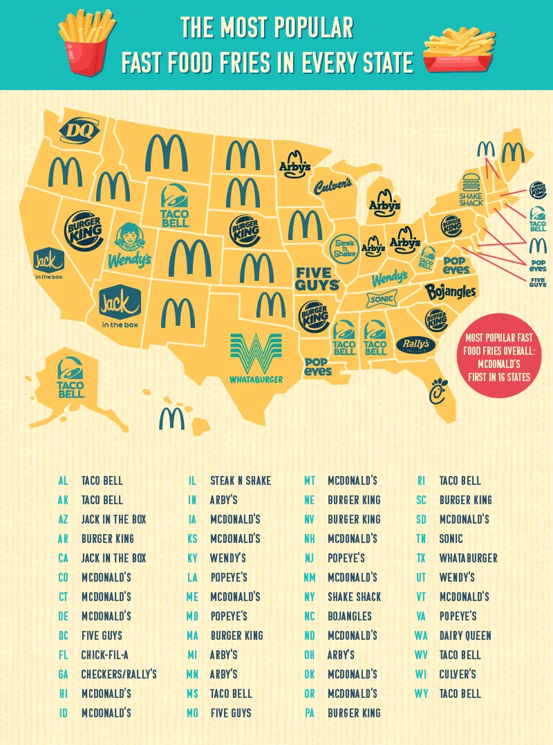 A new study found the most popular fast food fries in every state by looking at Google searches.