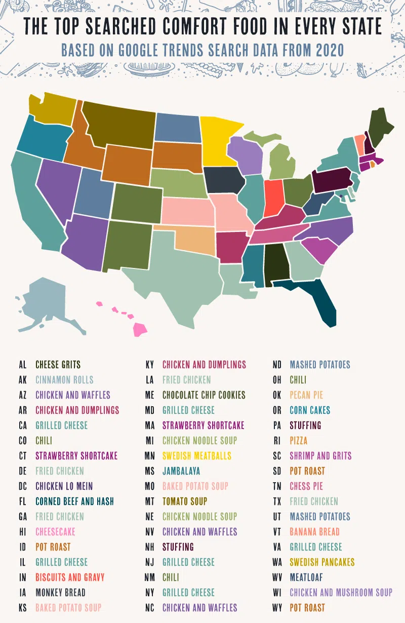 A new study figured out the top comfort foods we ate to get through last year, based on Google search trends across the country. Here are the top 10 . . .