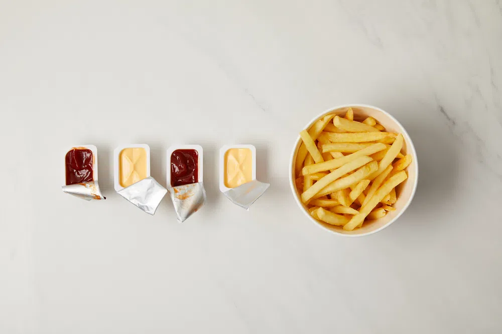 Additionally, up to five sauce packets can be purchased as a separate item.