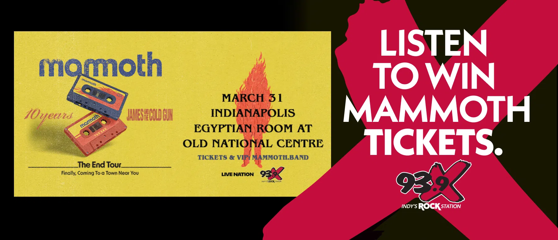 93.9X Presents Mammoth - The End Tour at Old National Centre on March 31st with special guests 10 Years and James And The Cold Gun! Enter to win tickets right now!