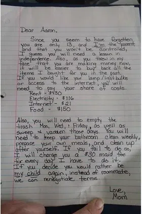 He was tired of being treated like a kid, and told mom he didn’t want to do chores anymore… So mom told him if he’d pay half the rent, plus buy food, pay the electr...