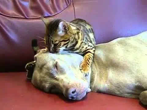 This dog seems to be in a deep trance from the massage work for his counter-part: