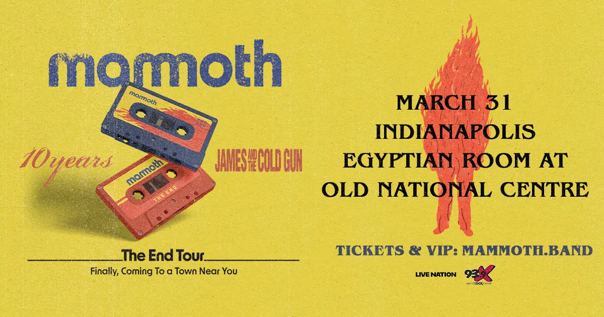 93.9X Presents Mammoth: The End Tour at Old National Centre on March 31st with special guests 10 Years and James and the Cold Gun